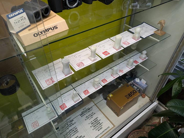 カメラの商品棚に、かっこよく作品が並んでいます。