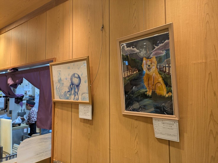 八街中美術部作品 銚子丸×ジュニアアートコラボ展in八街Vol.6 八街店6回目は、八街中学校美術部による展示。
